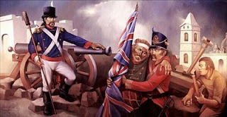 * La Segunda Invasión Inglesa de 1807, en la que las tropas británicas, luego de tomar Montevideo, fueron rechazadas cuando intentaron ocupar Buenos Aires, por las fuerzas defensoras, que se componían no sólo de las tropas oficiales al servicio del rey español, sino también de numerosas milicias urbanas, integradas por la población nativa a quienes se había armado y organizado militarmente durante el curso de las invasiones; el proceso es conocido como la Defensa.
